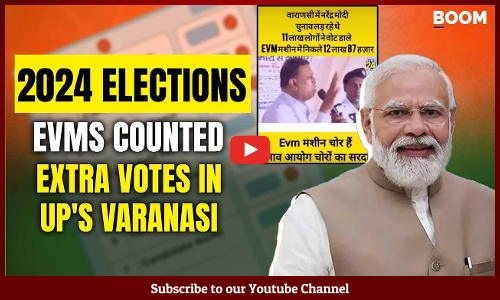 Tools used: The ECI called out the viral video and stated that it's from 2019 Lok Sabha elections. The total number of electors in Varanasi during the 2019 elections was 18,56,791. The total votes polled and counted in EVMs were 10,58,744, with an additional 2,085 postal votes. BOOM cross-checked the numbers mentioned in ECI's X post with the ECI website and found them to be correct. In the 2024 elections, the total number of electors in Varanasi was 19,97,578. The total number of EVM votes were 11,27,081 and postal votes were 3,062, amounting to 11,30,143 total votes.