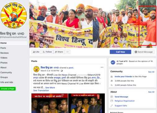 BOOM looked for the Vishwa Hindu Dal (VHD) on Facebook and found an unverified but claims to be the official page of the Vishwa Hindu Dal. In the cover photo of the page, we also noticed Bajrang Sonkar on the extreme right. The VHD could not be reached despite repeated attempts.