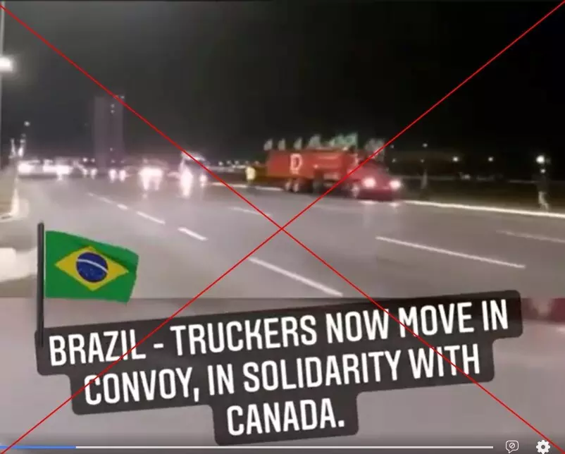 Social media posts claim a video clip shows Brazilian truckers expressing solidarity with protesters in Canada who oppose vaccine mandates. This is false; the footage was posted online months before the Canadian trucker demonstration began.