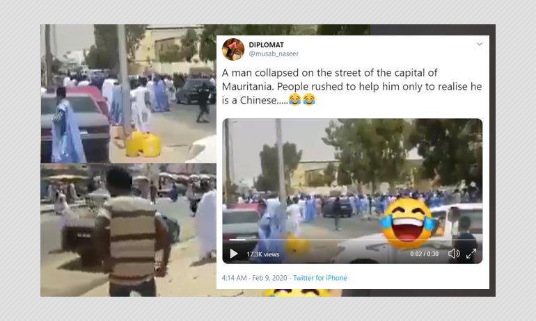 "A man collapsed on the street of the capital of Mauritania. People rushed to help him only to realise he is a Chinese," reads the caption on a tweet shared more than 700 times since February 8.