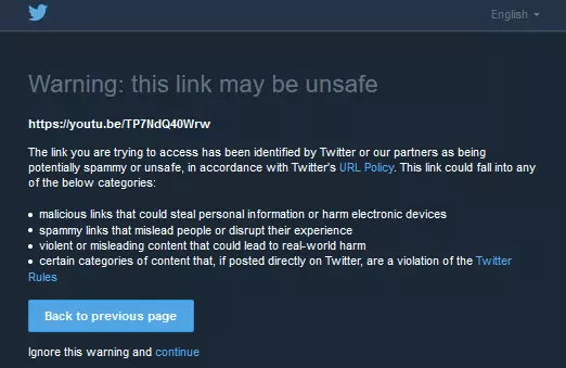 YouTube removed the video for violating its terms of service. Twitter also added a notice to some of the YouTube links to the video: