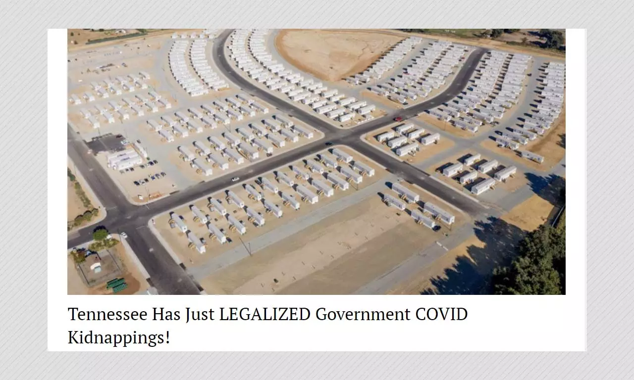 "Tennessee Has Just LEGALIZED Government COVID Kidnappings!" says the headline of an article published on a website called The Daily Allegiant on August 13, 2021.